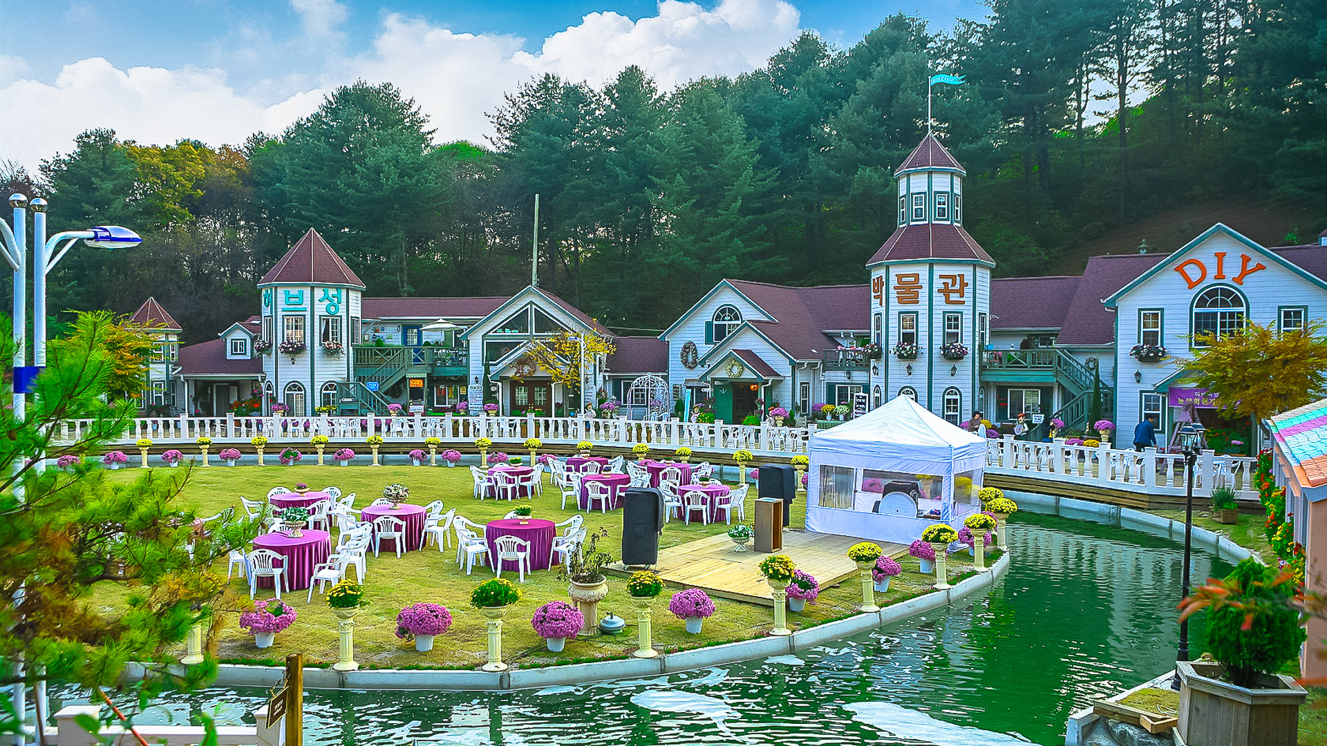 이탈리아의 물의 도시 베네치아(곤돌라.성.마을.상점.트레비분수.유리공예.가면축제) 프랑스 농가를 재현한 전통방식 만들기체험장인 엉 쁘띠 비라쥬, 국내 최대규모의 허브박물관(2000평의 내부에서 200여종의 허브관람), 야외정원(10000평), 허브박물관, 허브레스토랑, 허브갈비, 허브카페, 허브빵가게, 허브관련 상품을 볼 수 있는 허브상점으로 이루어져 있습니다.